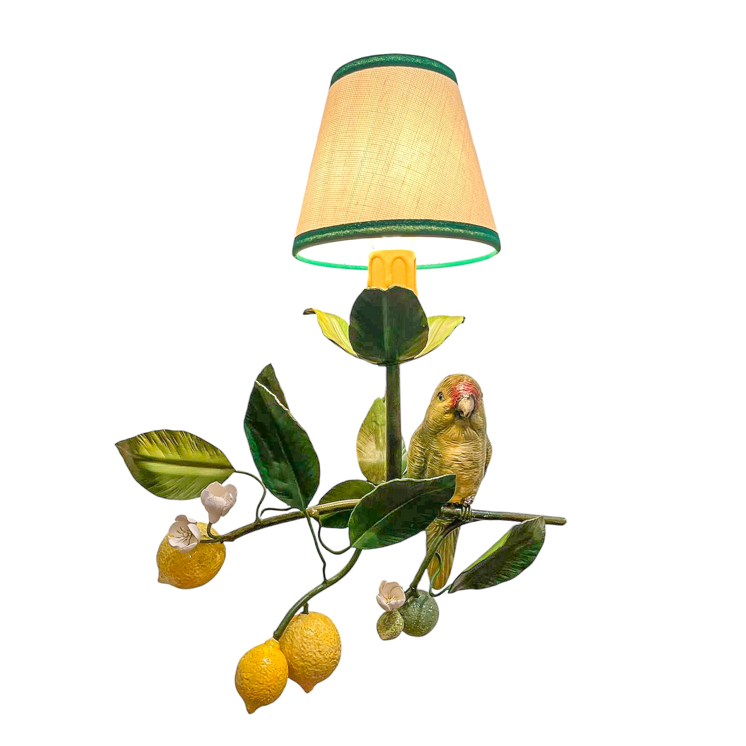 Arandela super charmosa e especial com galhos e limões sicilianos e pássaro