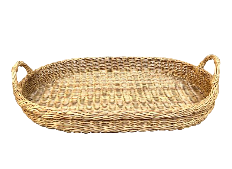 Para servir, organizar ou decorar, linda bandeja em junco natural, ovalada, com alças