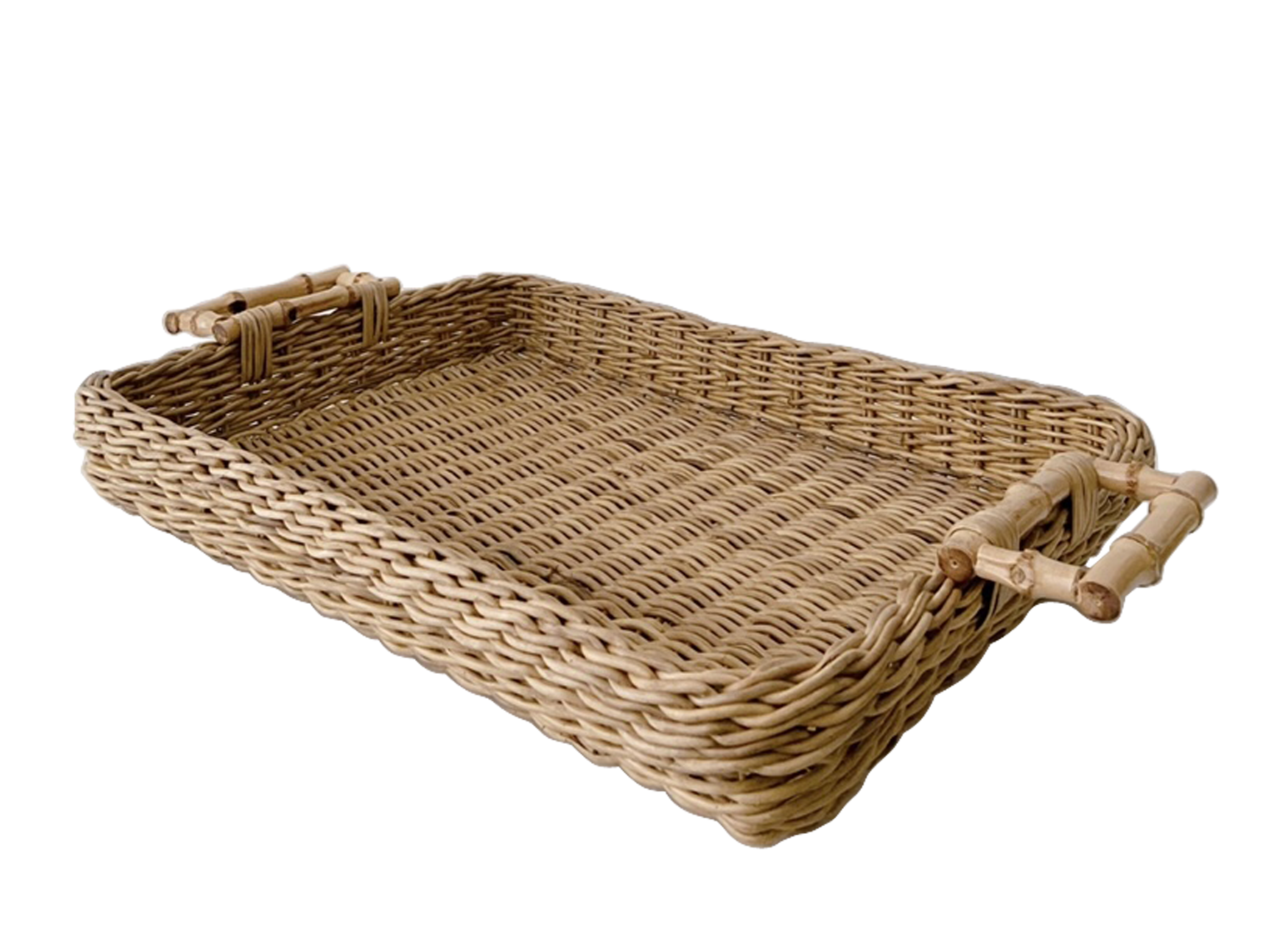 Para servir, organizar ou decorar, linda bandeja em junco natural, com alças em bambu