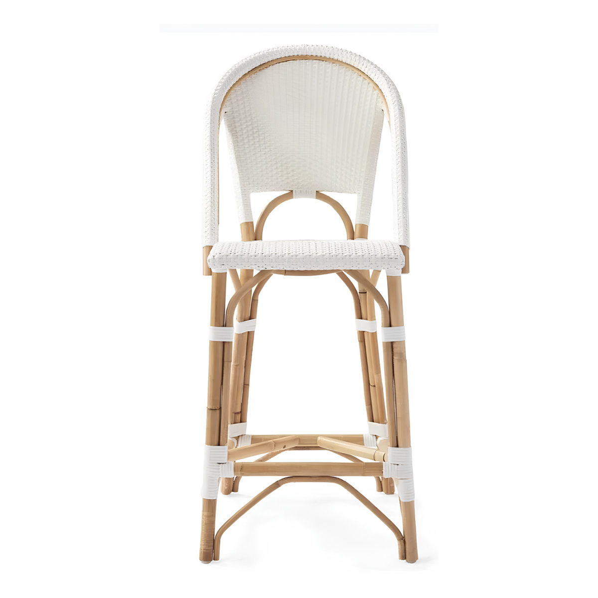 Linda banqueta alta em apuí com encosto e assento em fibra sintética branca, um charme em qualquer decoração