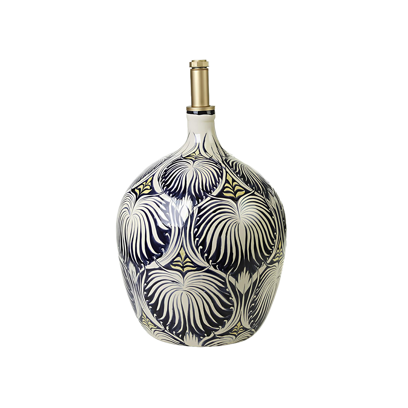 Linda base de abajur modelo garrafão com pintura de folhas de palmeira estilizadas em azul