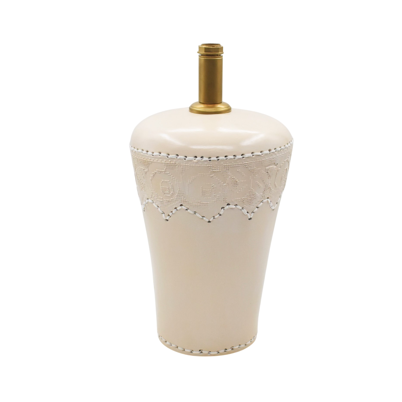 Lindo e delicada base de abajur modelo Monica, com detalhe de ponto cruz, todo em branco