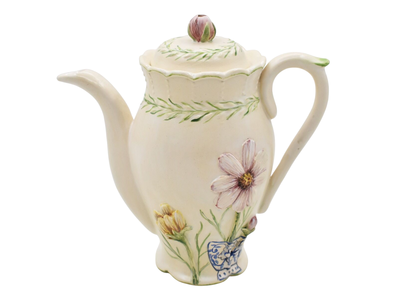 Bule com aplicação de flores cosmos