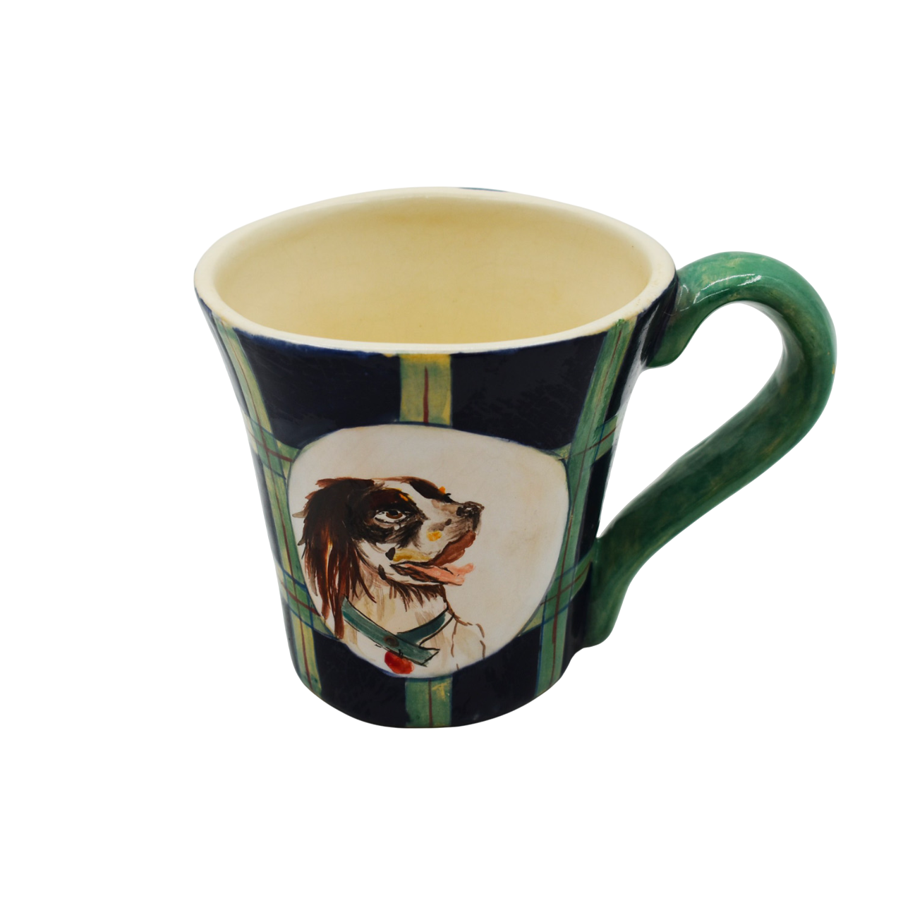 Tem mais charmosa? Caneca com estampa xadrez em verde e pintura de cachorro Border Collie
