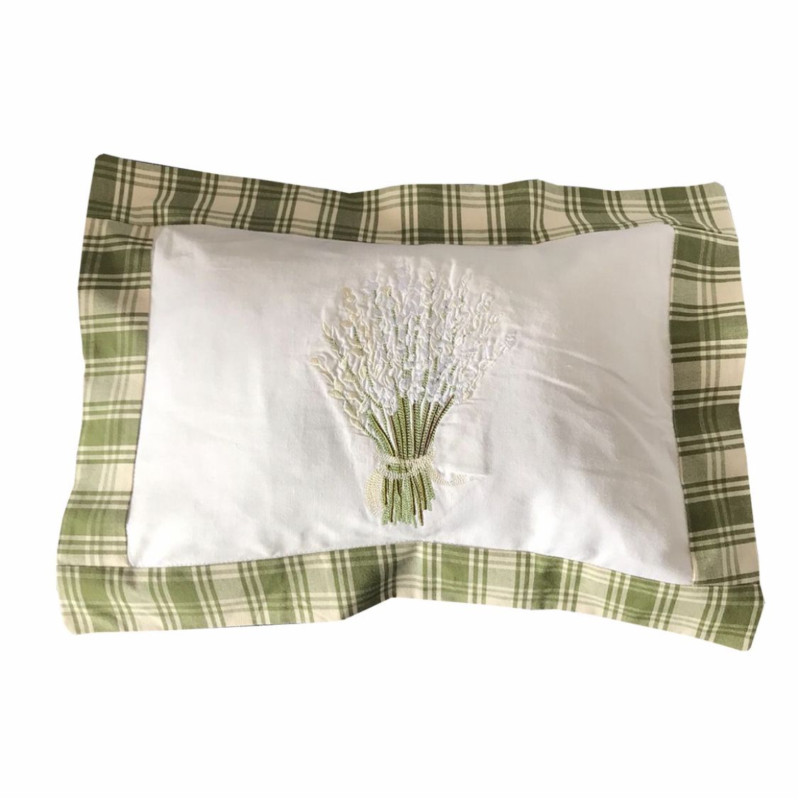 Um charme a capa de almofada com ramelhete bordado e barrado em xadrez! Verso: branco