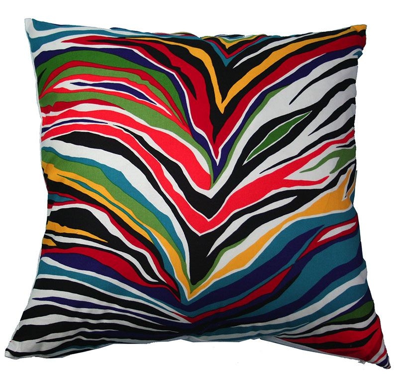 Capa de almofada com estampa de zebra multicolorida.