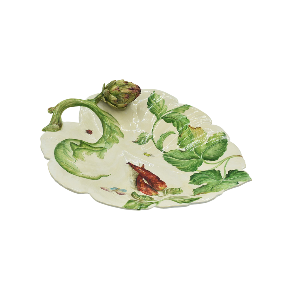 Charmosa folha decorativa com pintura de folhagens e aplique de alcachofra, para decorar a mesa, a cozinha...