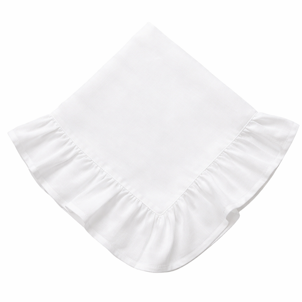 Guardanapo em linho branco com babados soltos!