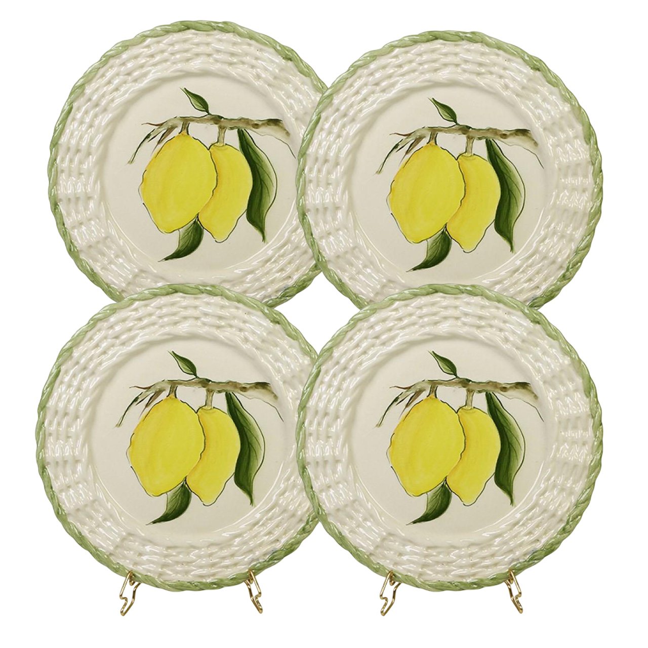 Lindo jogo de pratos rasos com borda trançada e pintura de limões sicilianos