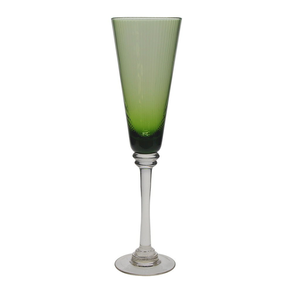 Lindo e moderno jogo de taças para champagne em verde escuro com delicado canelado