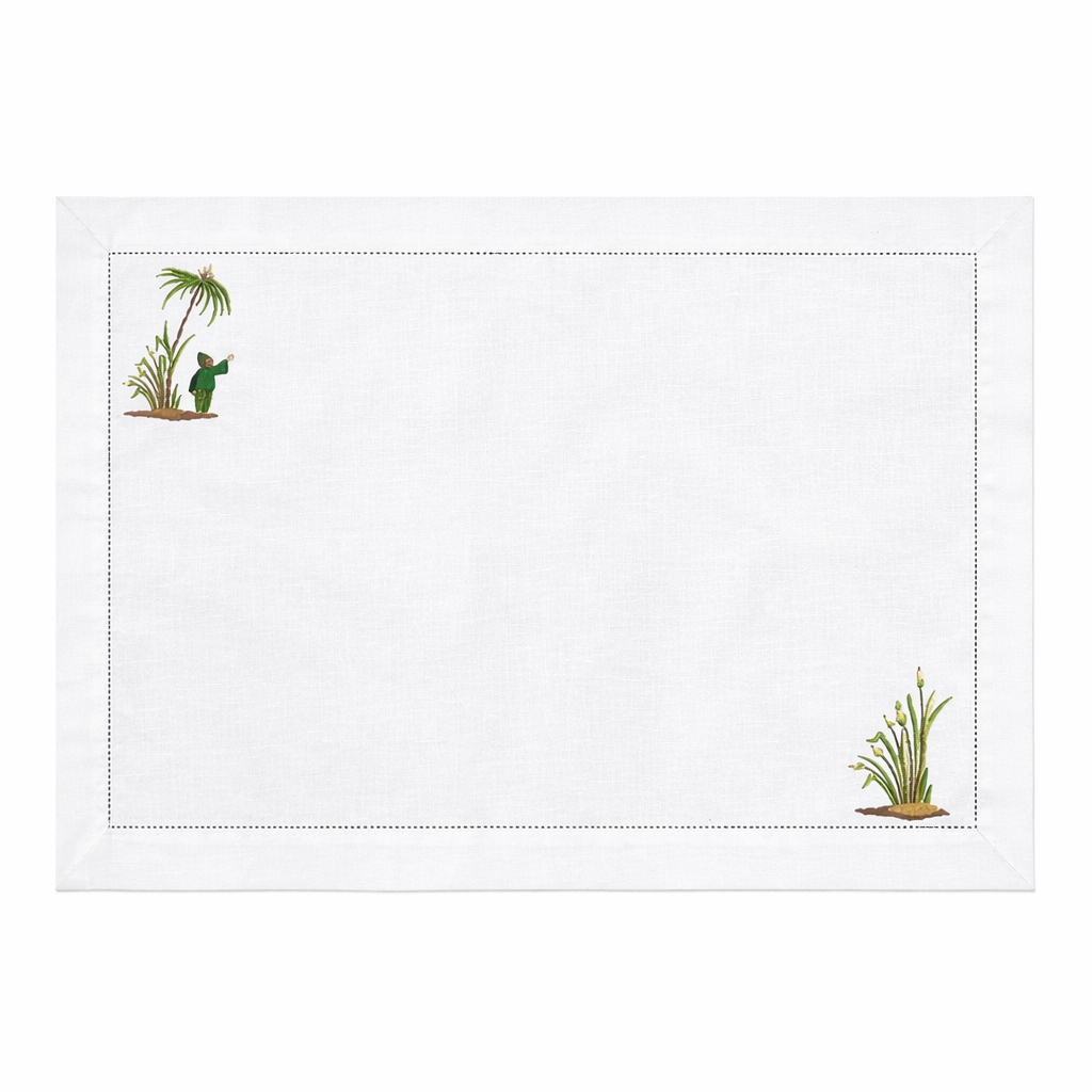 Delicado jogo americano em linho com bordados de plantas de lagoa em dois pontos. Para dar um toque especial em qualquer mesa!