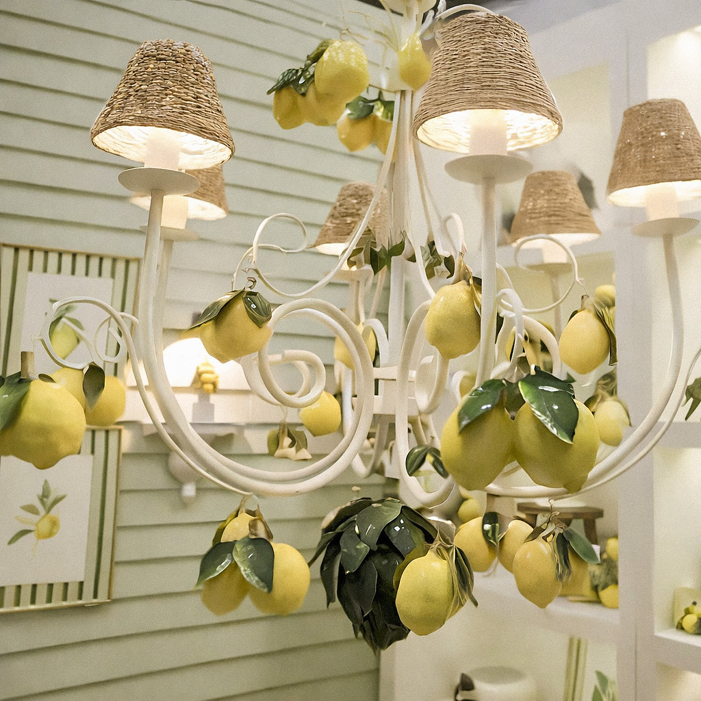 Lindo lustre em ferro com aplicação de limões, ideal para copas! Todo feito e pintado à mão pela Zanatta Casa!