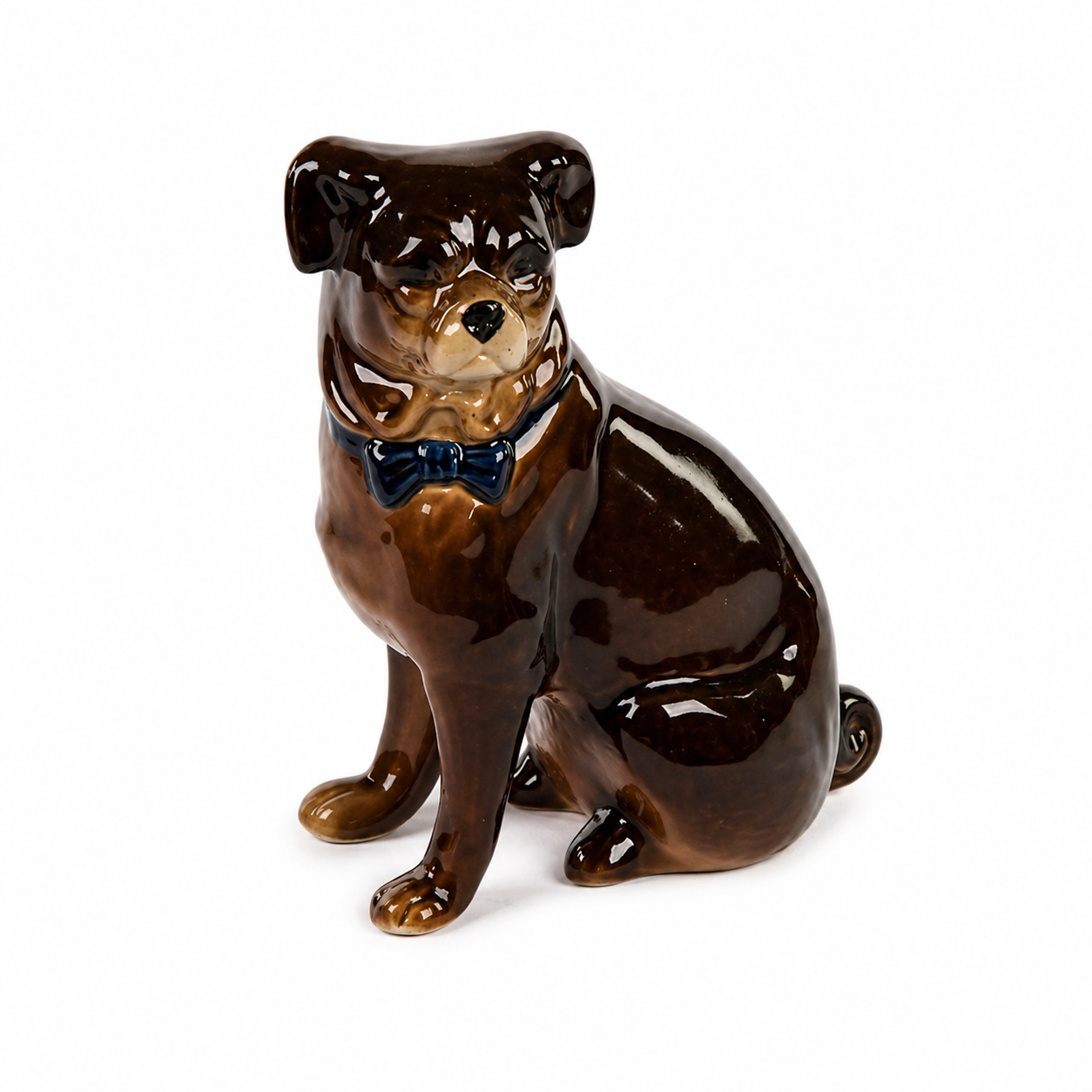 MINI CACHORRO MARROM SENTADO COM GRAVATA AZUL feito e pintado pela Zanatta Casa