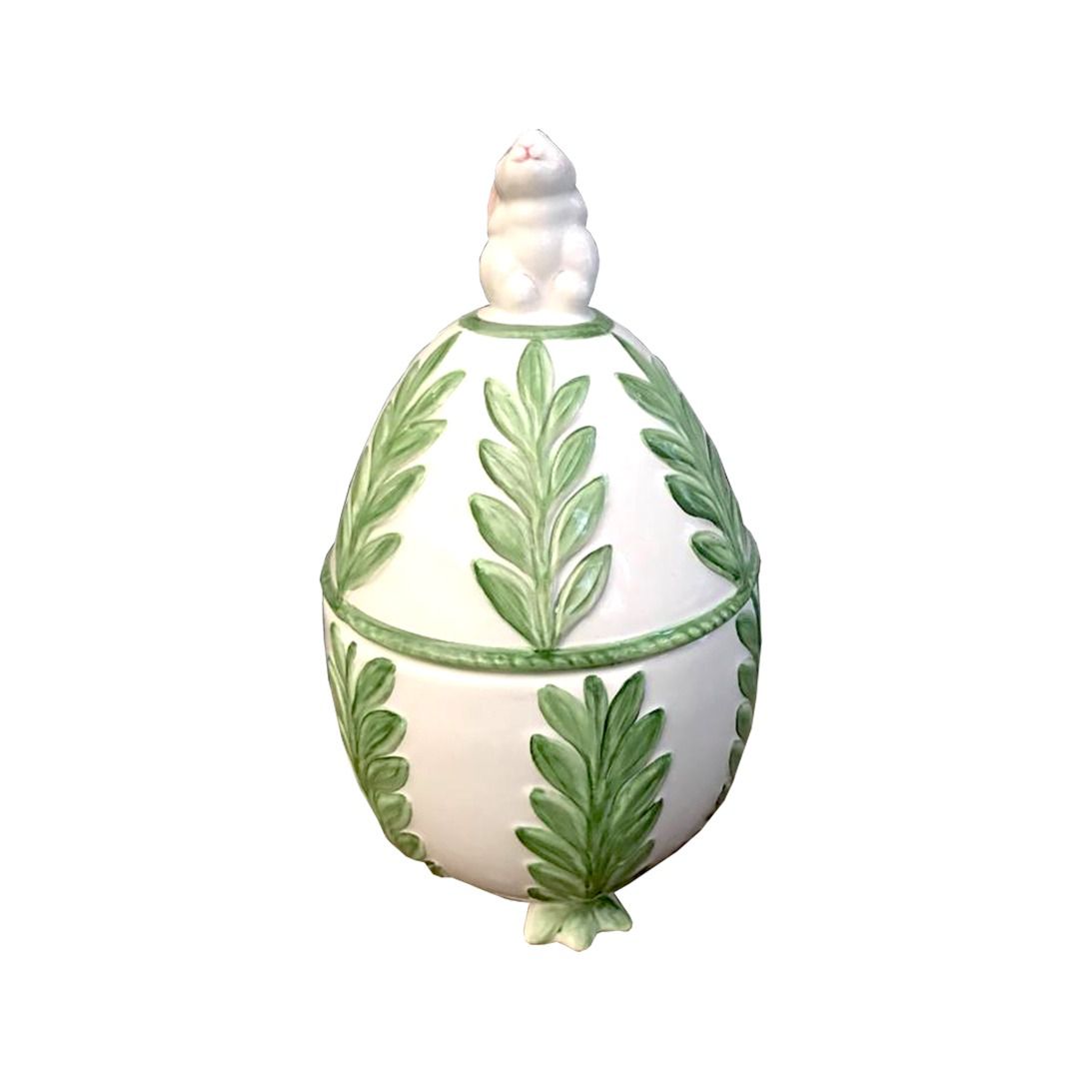 Lindo ovo de cerâmica com detalhes de ramos em verde! Para usar e decorar!