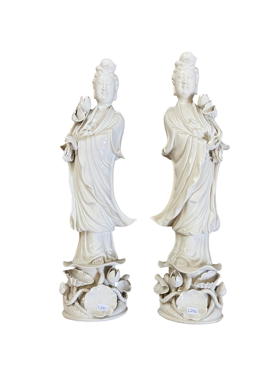 Lindo e delicado par de esculturas de chinesas, em porcelana, vintage