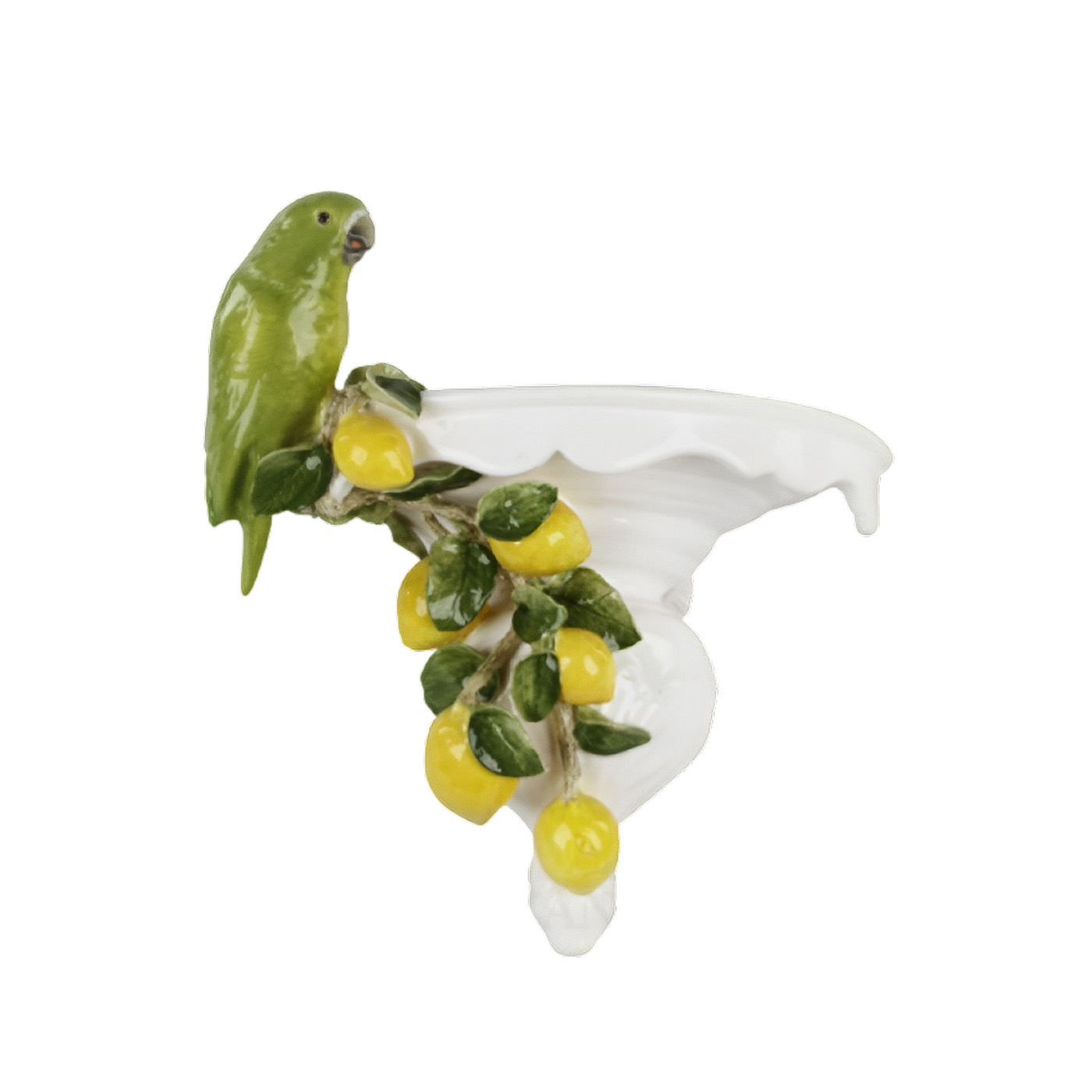 Peanha em cerâmica com pássaro Tuim no galho de limão