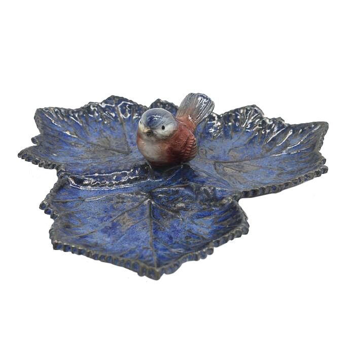 Petisqueira trio folhas de uva azul com pássaro Zanatta Casa