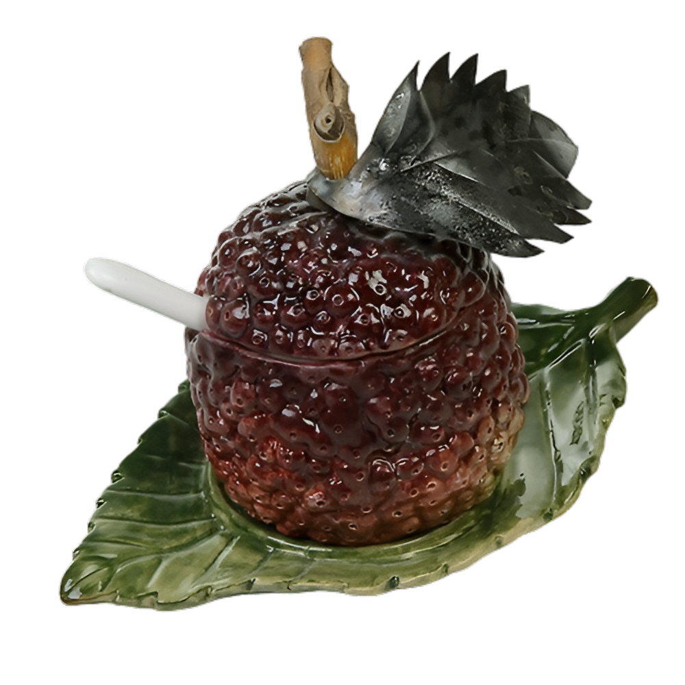 Puro charme o porta geleia em formato de framboesa com pratinho de folha, que mimo!