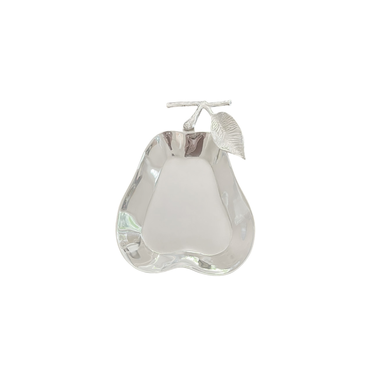 Delicado pratinho de pão em prata com formato de pêra, com folhinha!