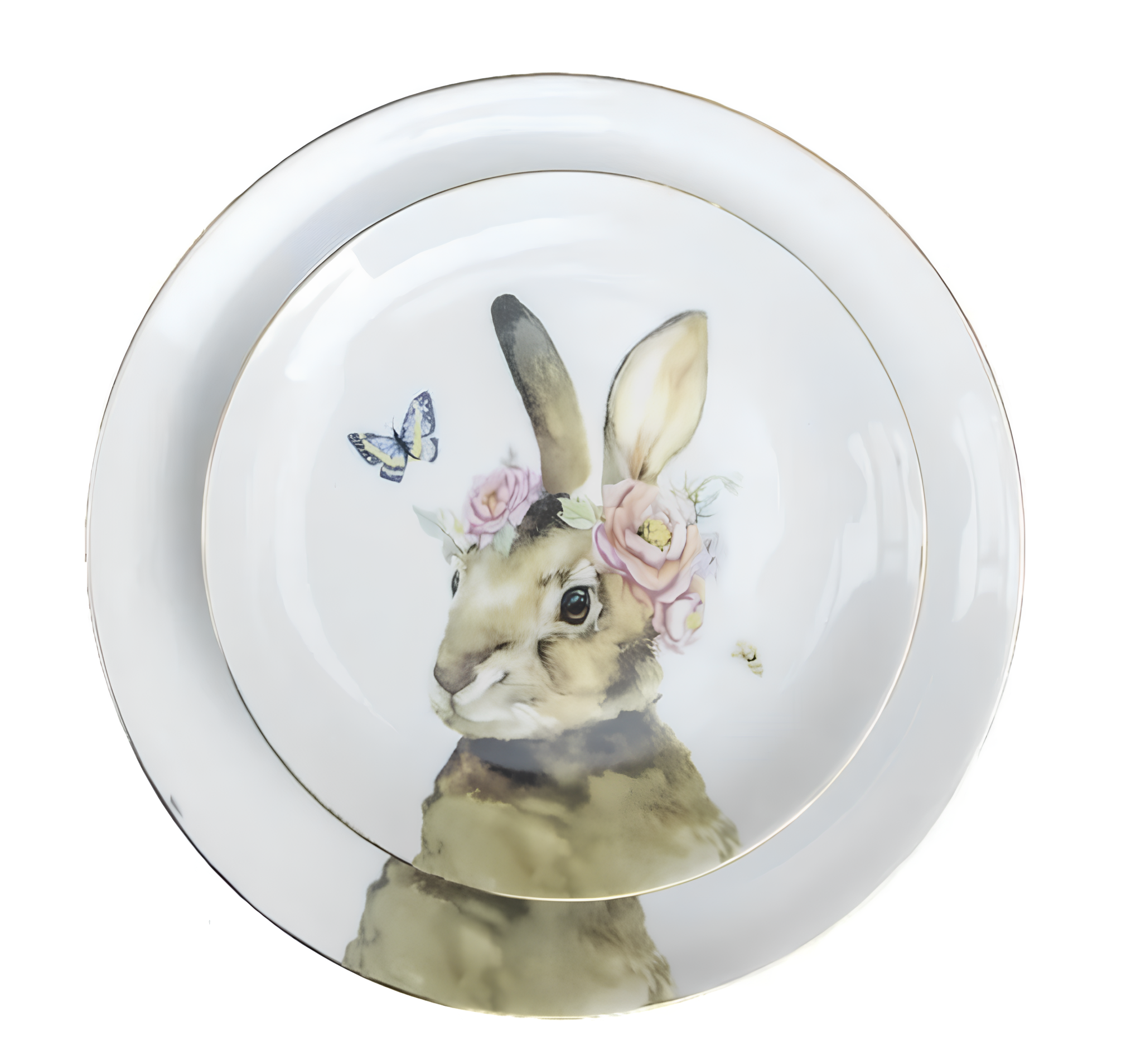 Prato raso e de sobremesa Coelha com Borboleta Friso dourado