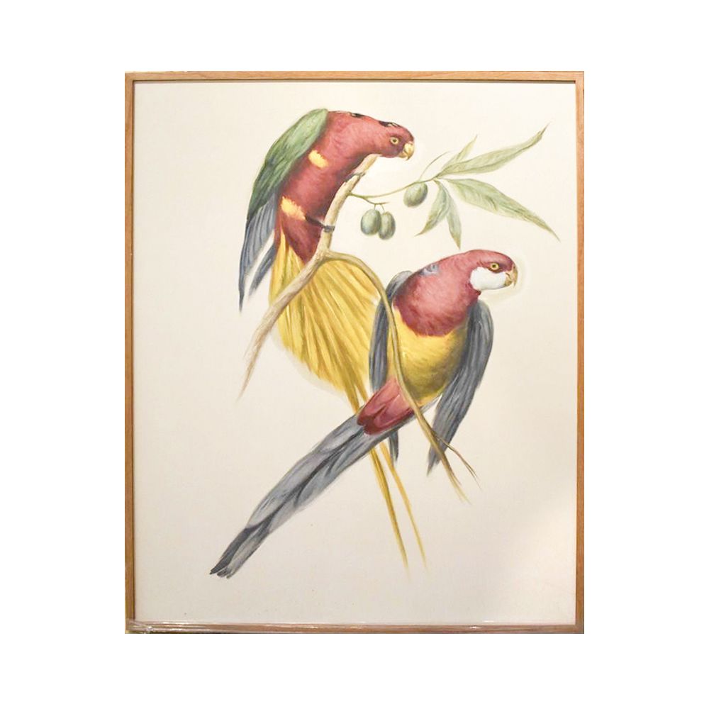 Lindo quadro pintado a óleo com pássaros coloridos, uma peça de efeito