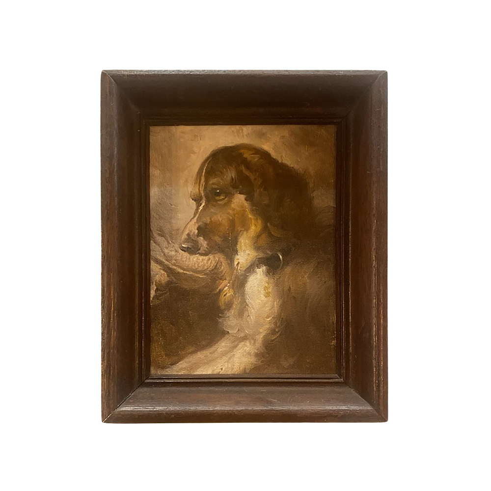 Para os amantes de cachorro, quadro em pintura à óleo com cachorro e moldura de madeira, um charme