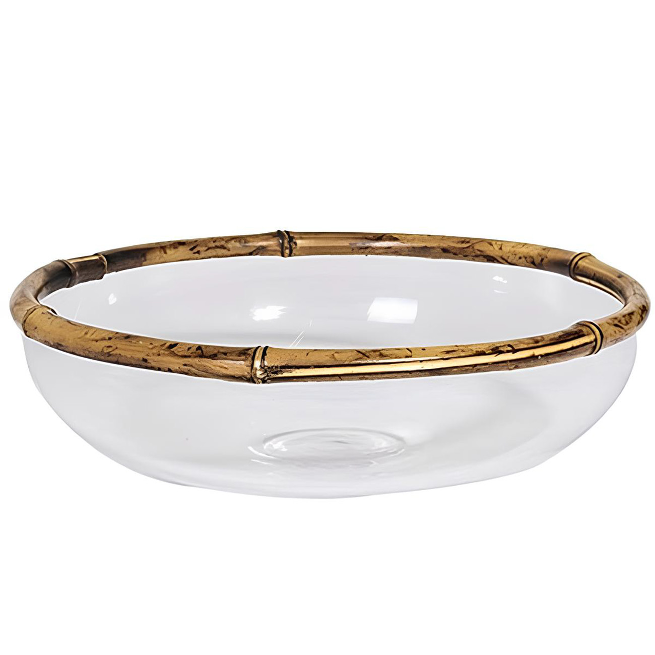 Saladeira de vidro com borda de bambu, linda!