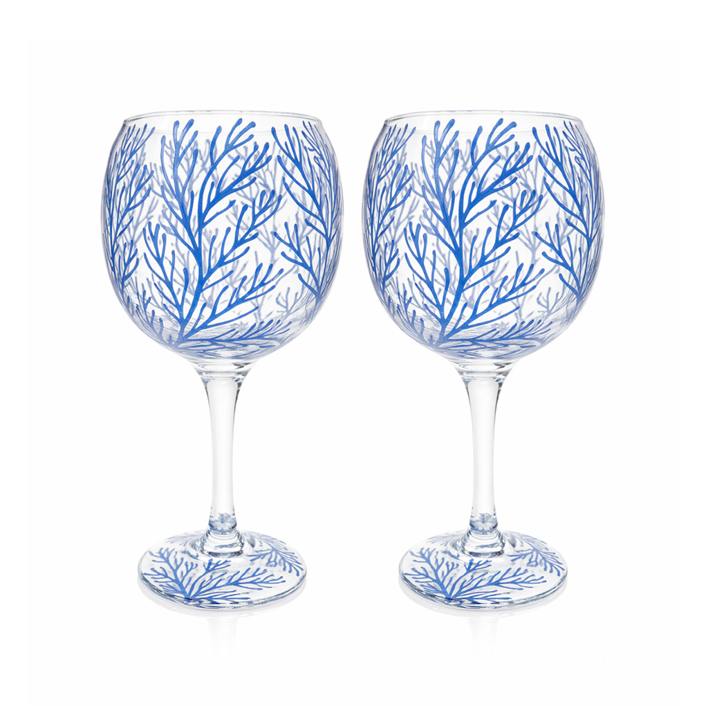 Para servir gin com charme com nossa taça com desenho de coral azul, jogo com 2 unidades