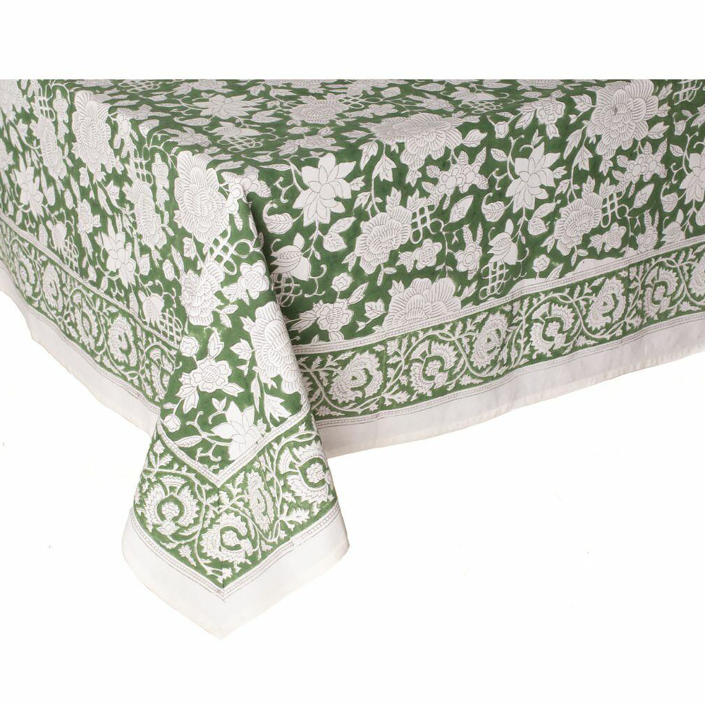 Linda toalha indiana com estampa feita na técnica blockprint de flores em branco e fundo verde