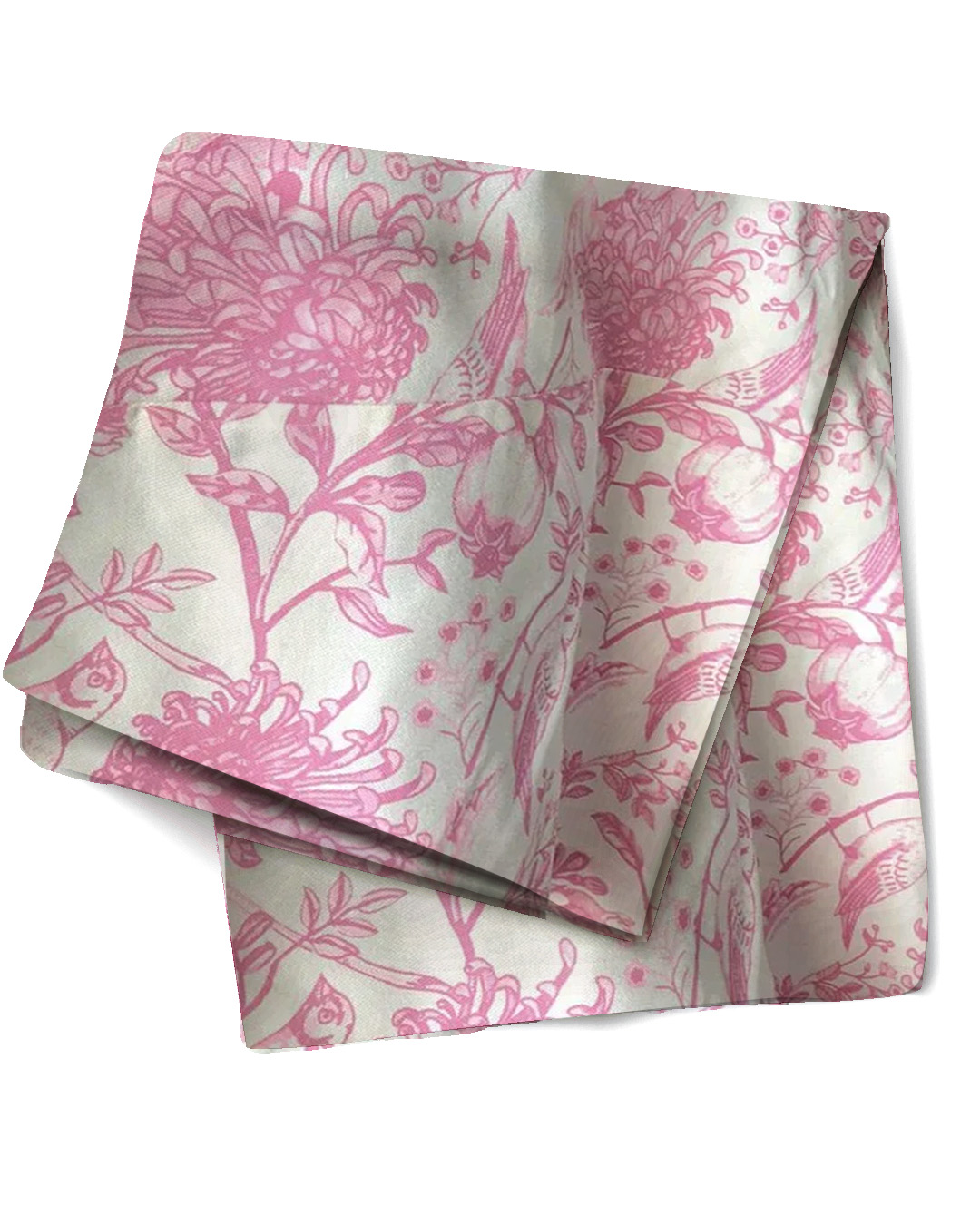 Linda toalha de mesa com delicada estampa de flores e pássaros em rosa, para deixar qualquer mesa mais interessante!