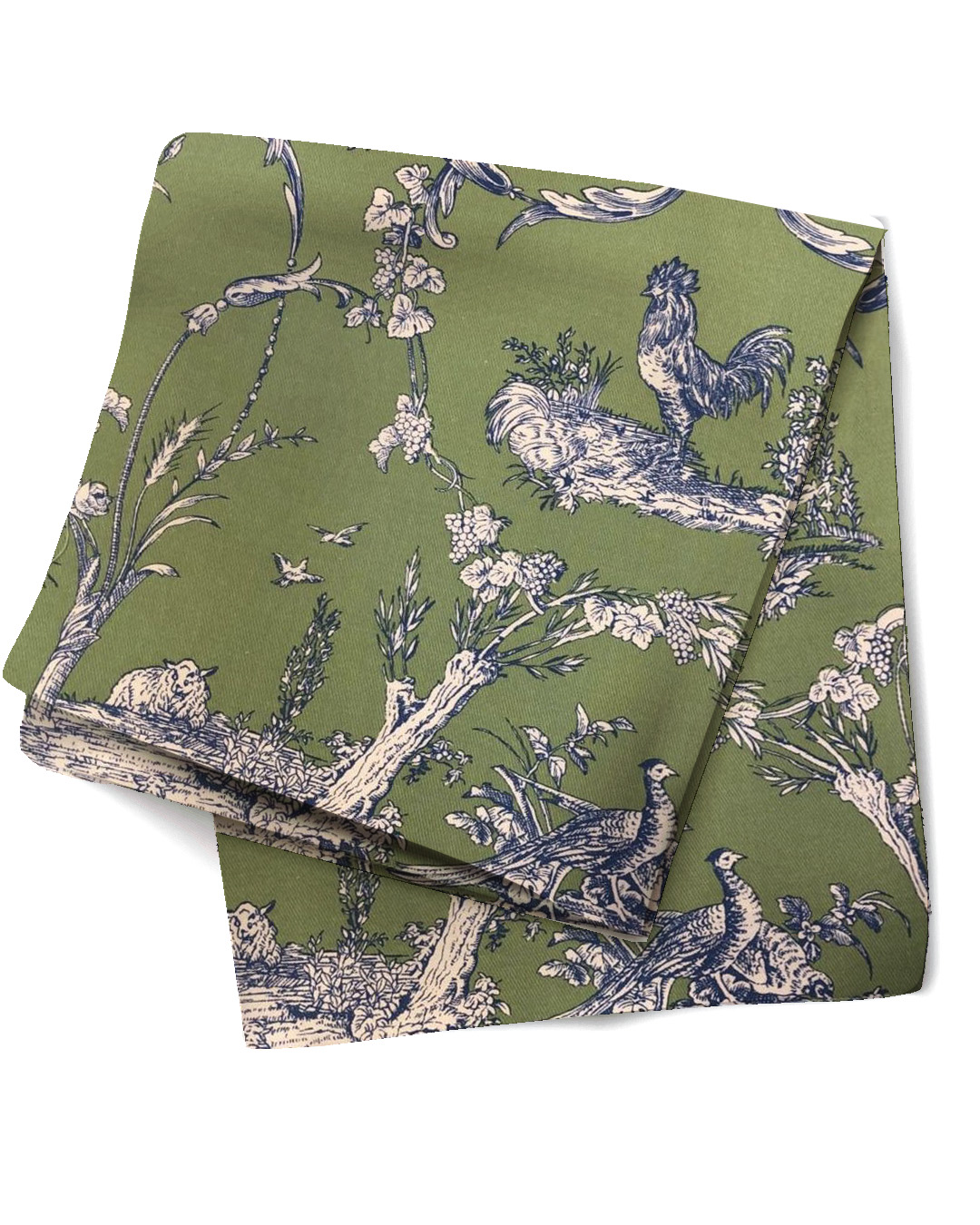 Linda toalha de mesa em toile du jouy com pássaros, frutas e cachorros!