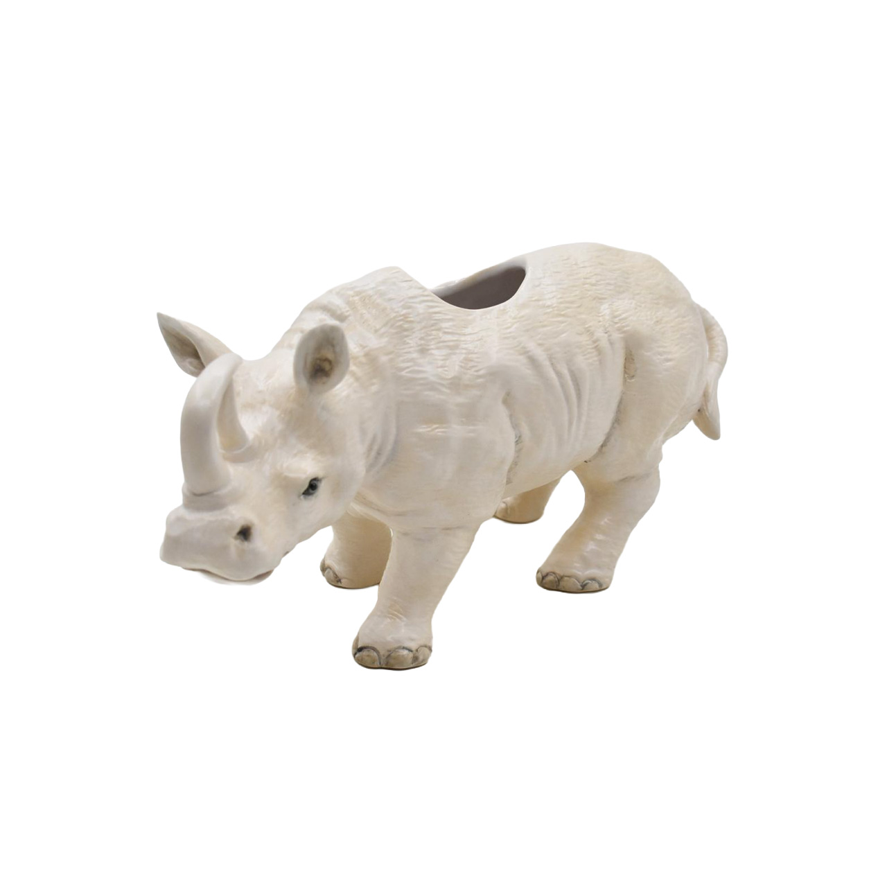 Charme em estilo savana para a decoração de casa: vaso em formato de rinoceronte branco